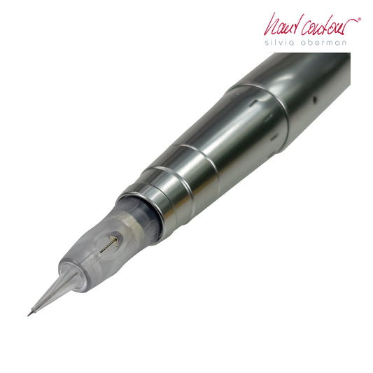 The needle base depth is adjustable by simply turning the front part of the handpiece and thus does justice to the individual needs when working. A wide range of needle combinations enables both the drawing of fine hairs and small body tattoos. High -quality materials such as anodized aluminum and smooth surfaces allow the devices to be easily cleaned.